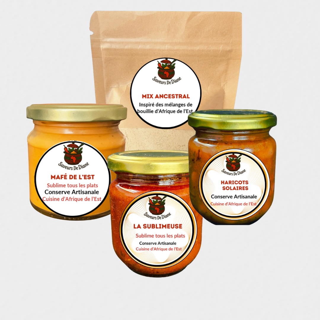 Découvrez l’essentiel de nos saveurs artisanales, réunies dans un seul pack pour vous permettre de goûter nos recettes phares, faites maison avec soin et inspiration africaine.